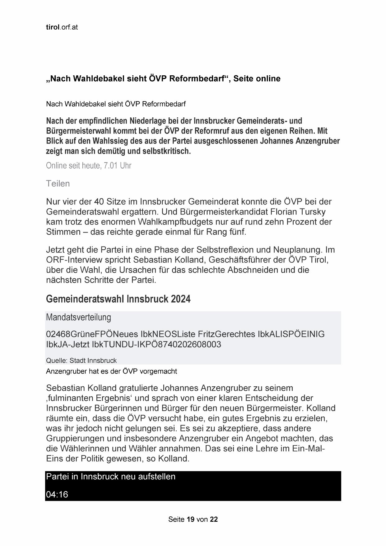 „Nach Wahldebakel sieht ÖVP Reformbedarf“, Seite online