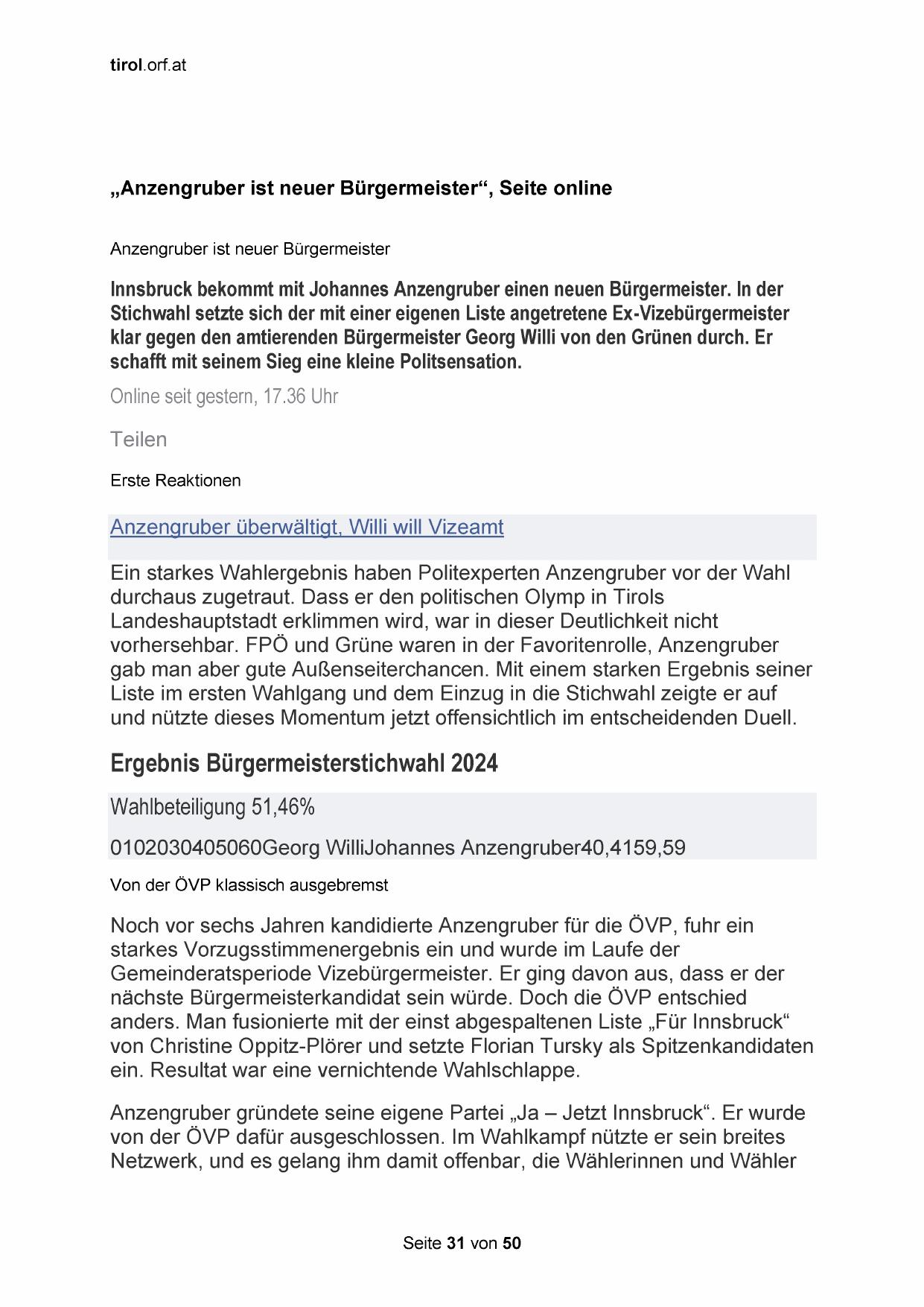 „Anzengruber ist neuer Bürgermeister“, Seite online