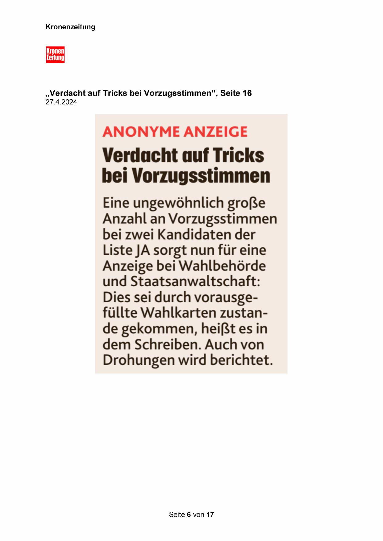„Verdacht auf Tricks bei Vorzugsstimmen“, Seite 16