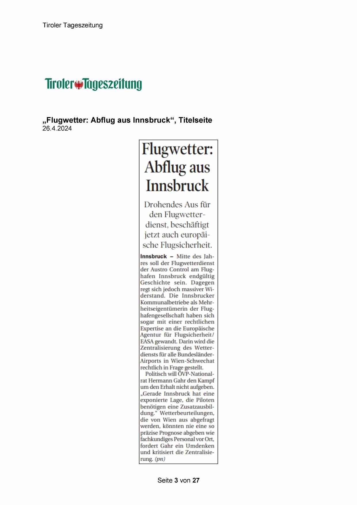 Innsbruck — Mitte des Jahres soll der Flugwetterdienst