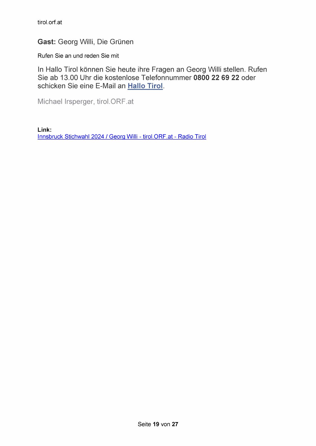 Innsbruck Stichwahl 2024 / Georg Willi - tirol.ORF.at - Radio Tirol