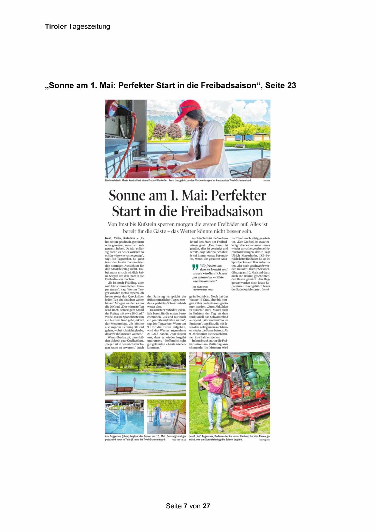 „Sonne am 1. Mai: Perfekter Start in die Freibadsaison“, Seite 23