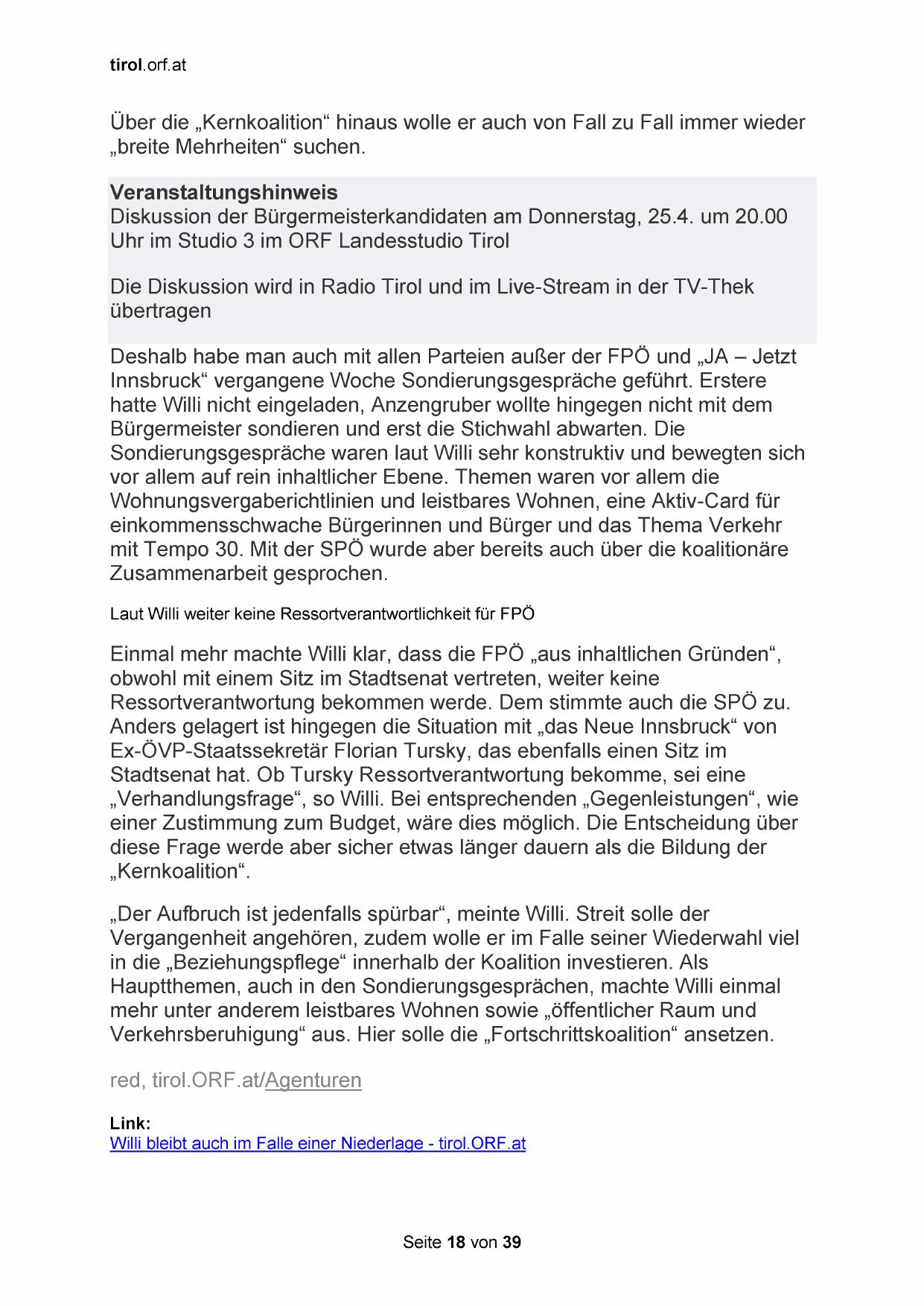 Willi bleibt auch im Falle einer Niederlage - tirol.ORF.at