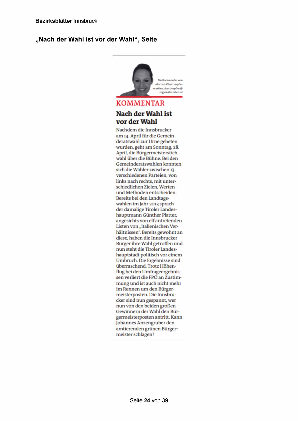 nun steht die Tiroler Landeshauptstadt politisch vor einem