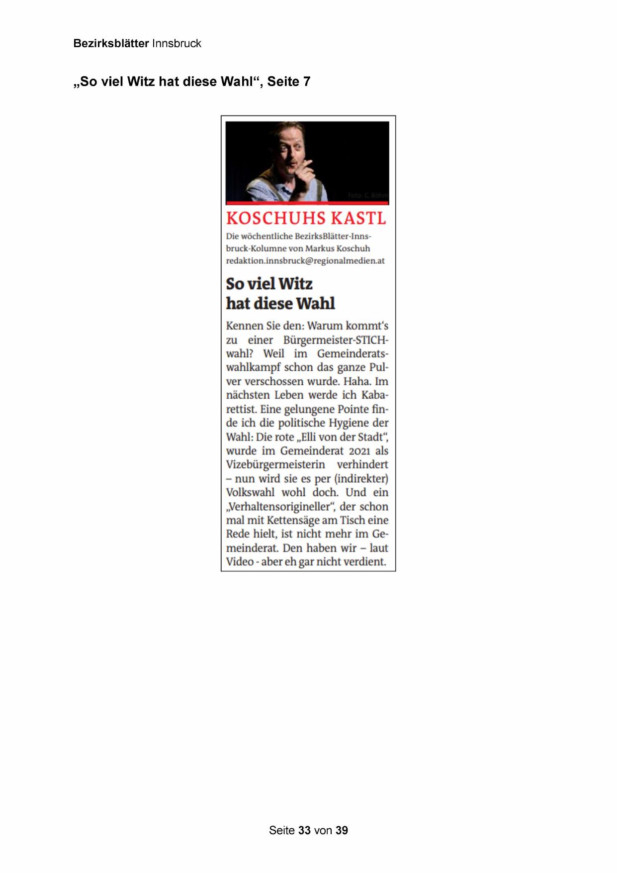 Die wöchentliche BezirksBlätter-Innsbruck-Kolumne von Markus Koschuh