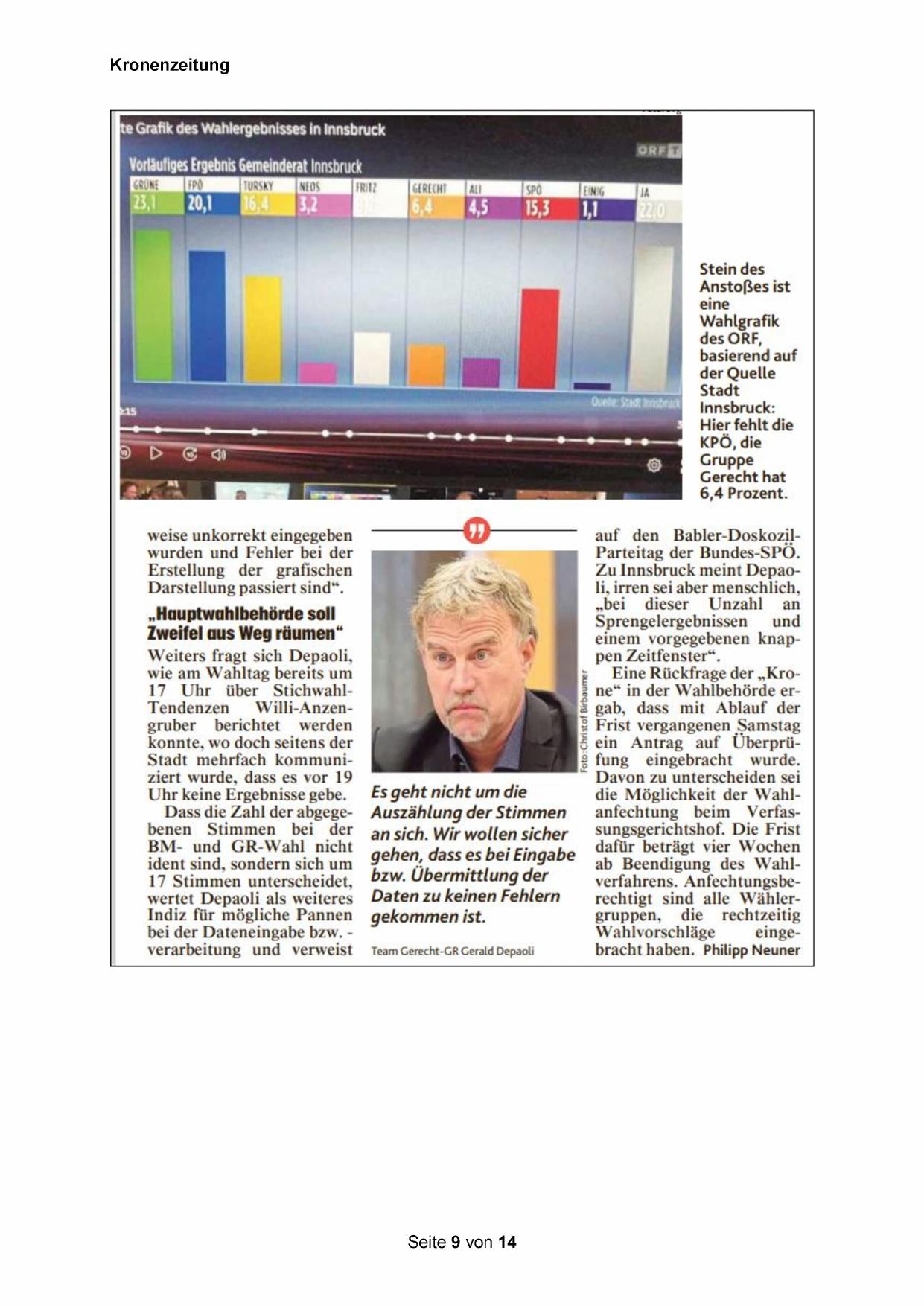 Vorläufiges Ergebnis Gemeinderat Innsbruck