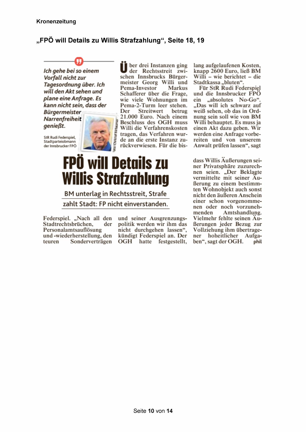 „FPÖ will Details zu Willis Strafzahlung“, Seite 18, 19
