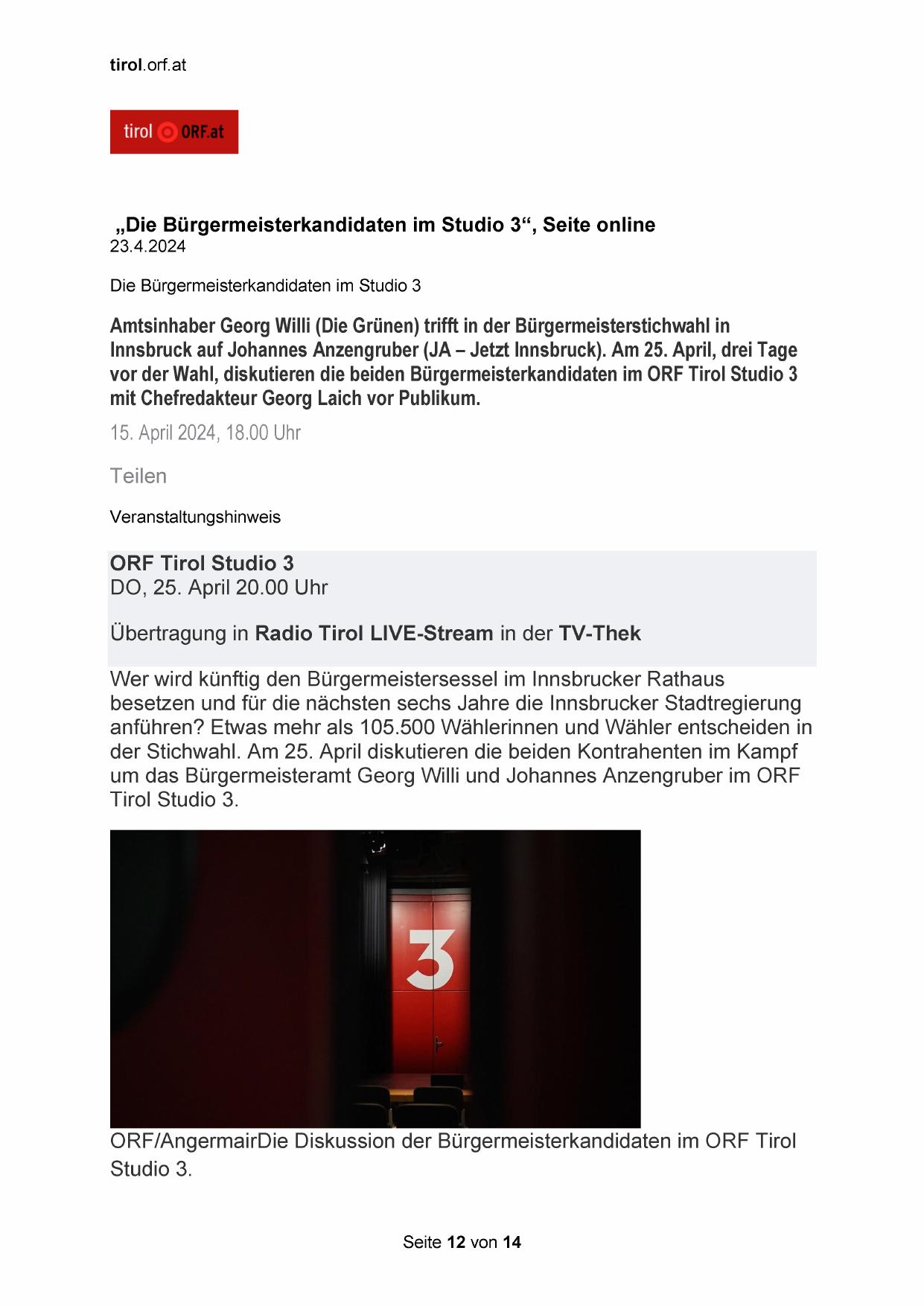 „Die Bürgermeisterkandidaten im Studio 3“, Seite online