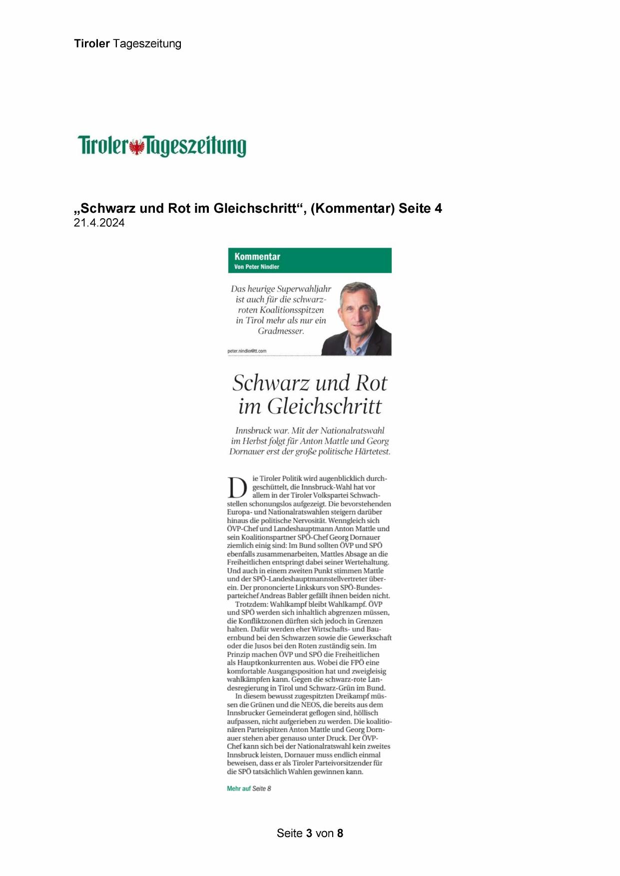 aufpassen, nicht aufgerieben zu werden. Die koalitionären Parteispitzen Anton Mattle und Georg Dornauer stehen aber genauso unter Druck. Der ÖVP-