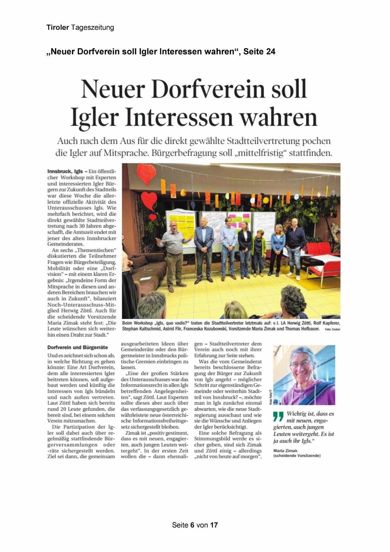 „Neuer Dorfverein soll Igler Interessen wahren“, Seite 24