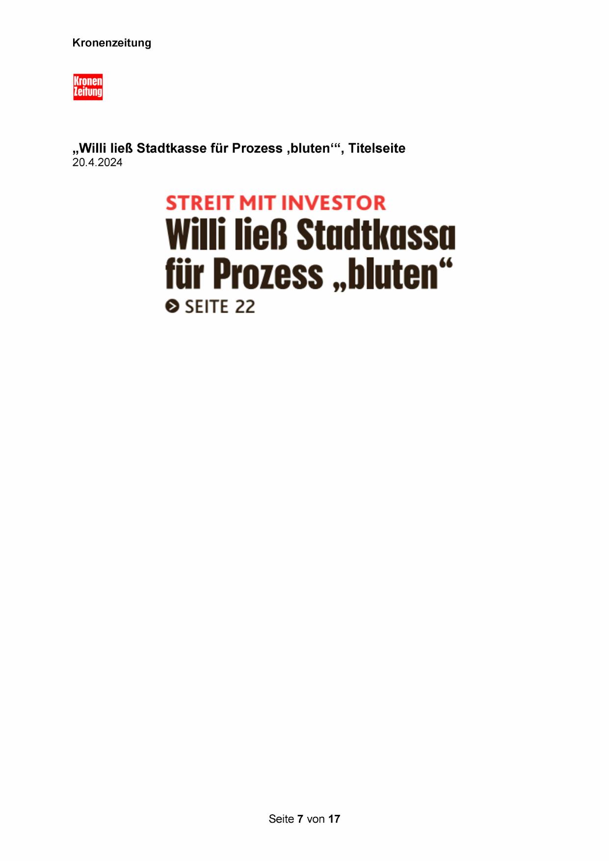 „Willi ließ Stadtkasse für Prozess ‚bluten‘“, Titelseite