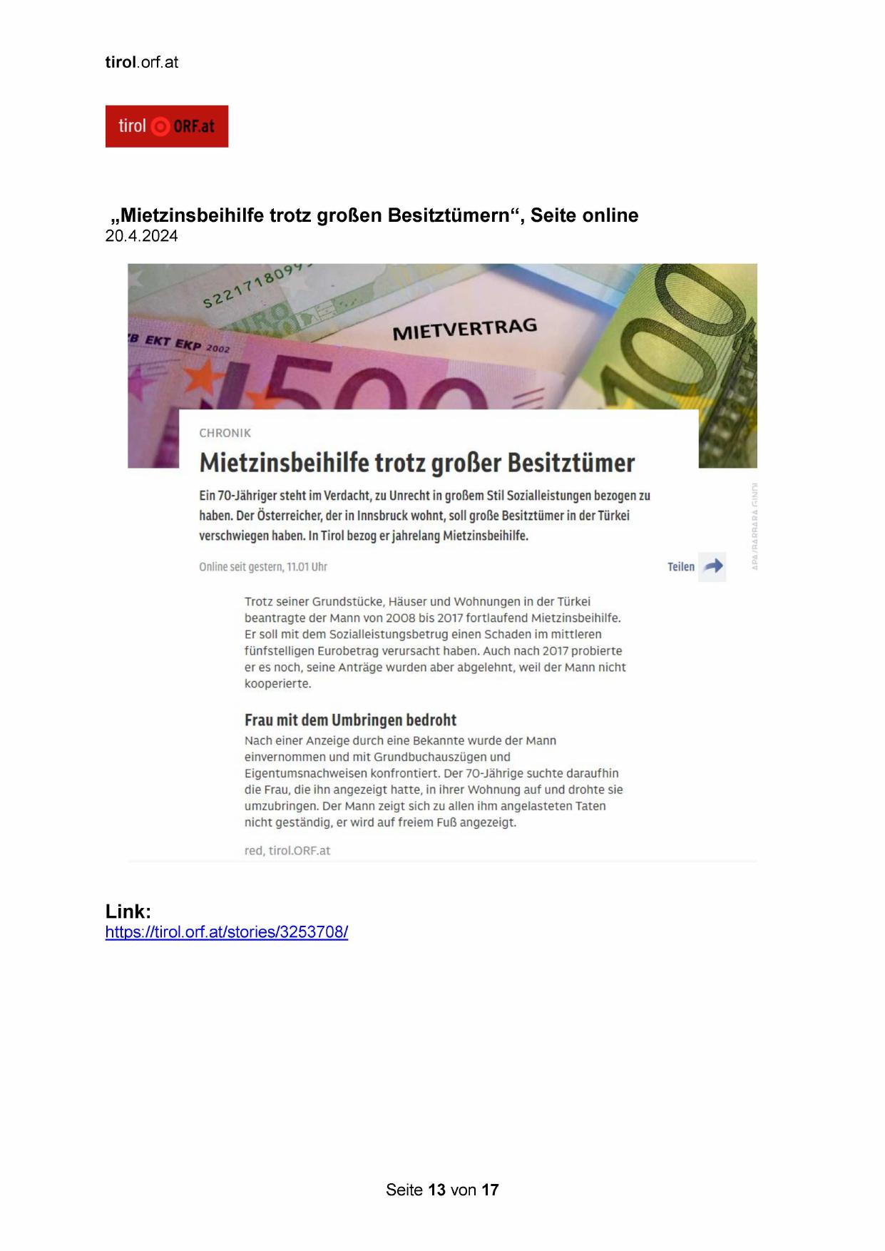 verschwiegen haben. In Tirol bezog er jahrelang Mietzinsbeihilfe.