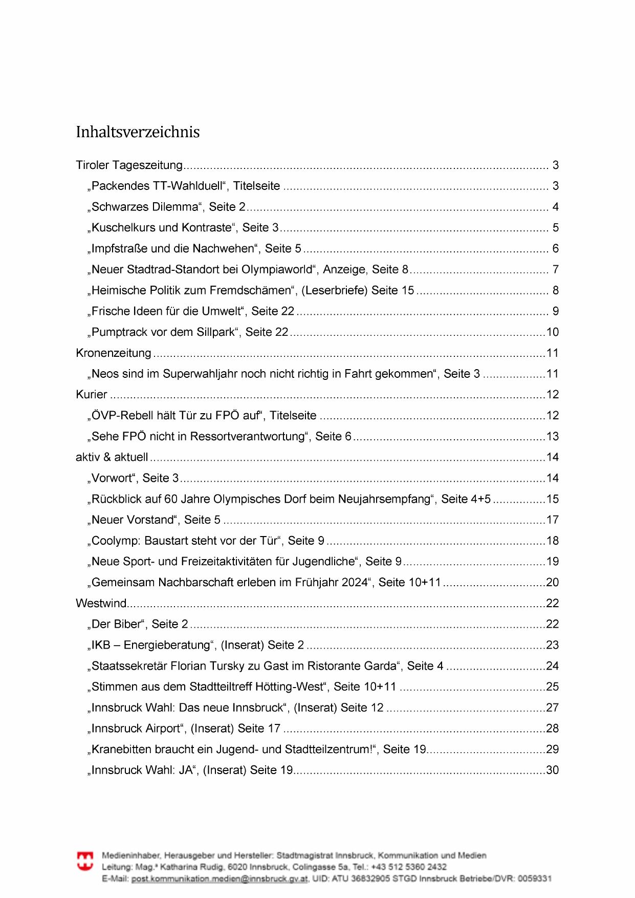 „Innsbruck Wahl: Das neue Innsbruck“, (Inserat) Seite 12 ... 27
