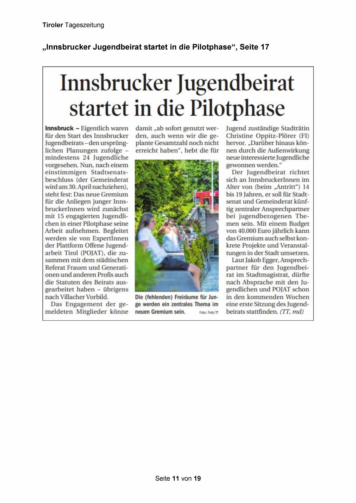 „Innsbrucker Jugendbeirat startet in die Pilotphase“, Seite 17