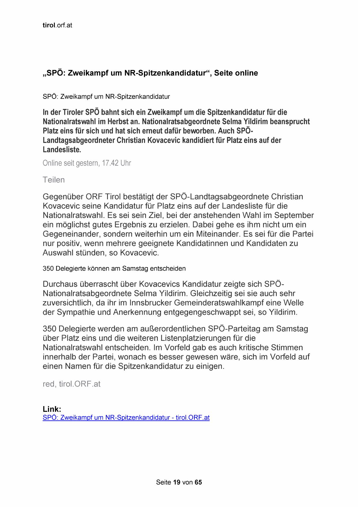 „SPÖ: Zweikampf um NR-Spitzenkandidatur‘“, Seite online