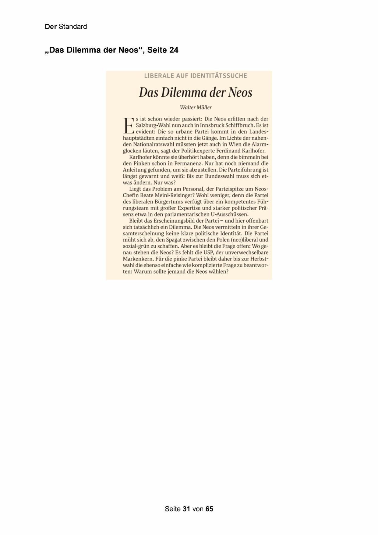 sich tatsächlich ein Dilemma. Die Neos vermitteln in ihrer Gesamterscheinung keine klare politische Identität. Die Partei