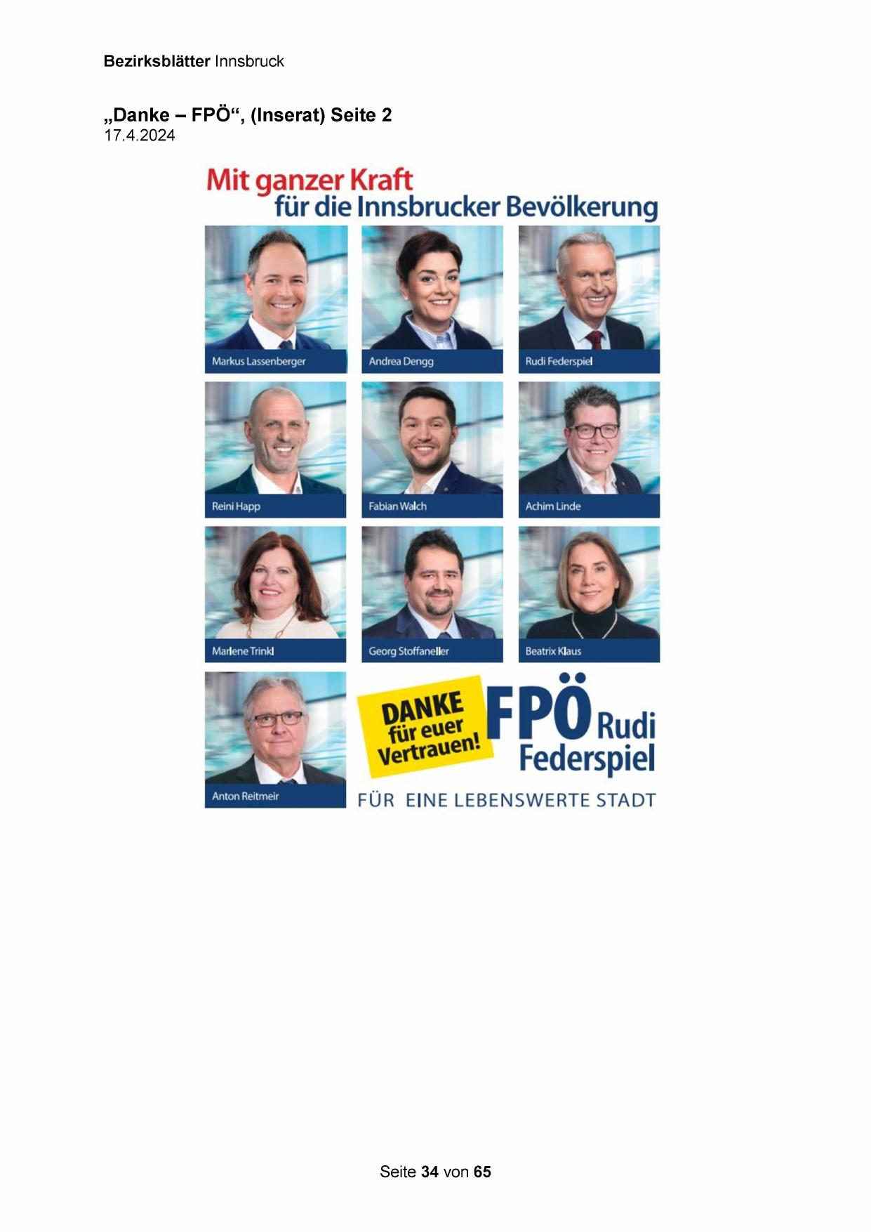 „Danke - FPÖ“, (Inserat) Seite 2