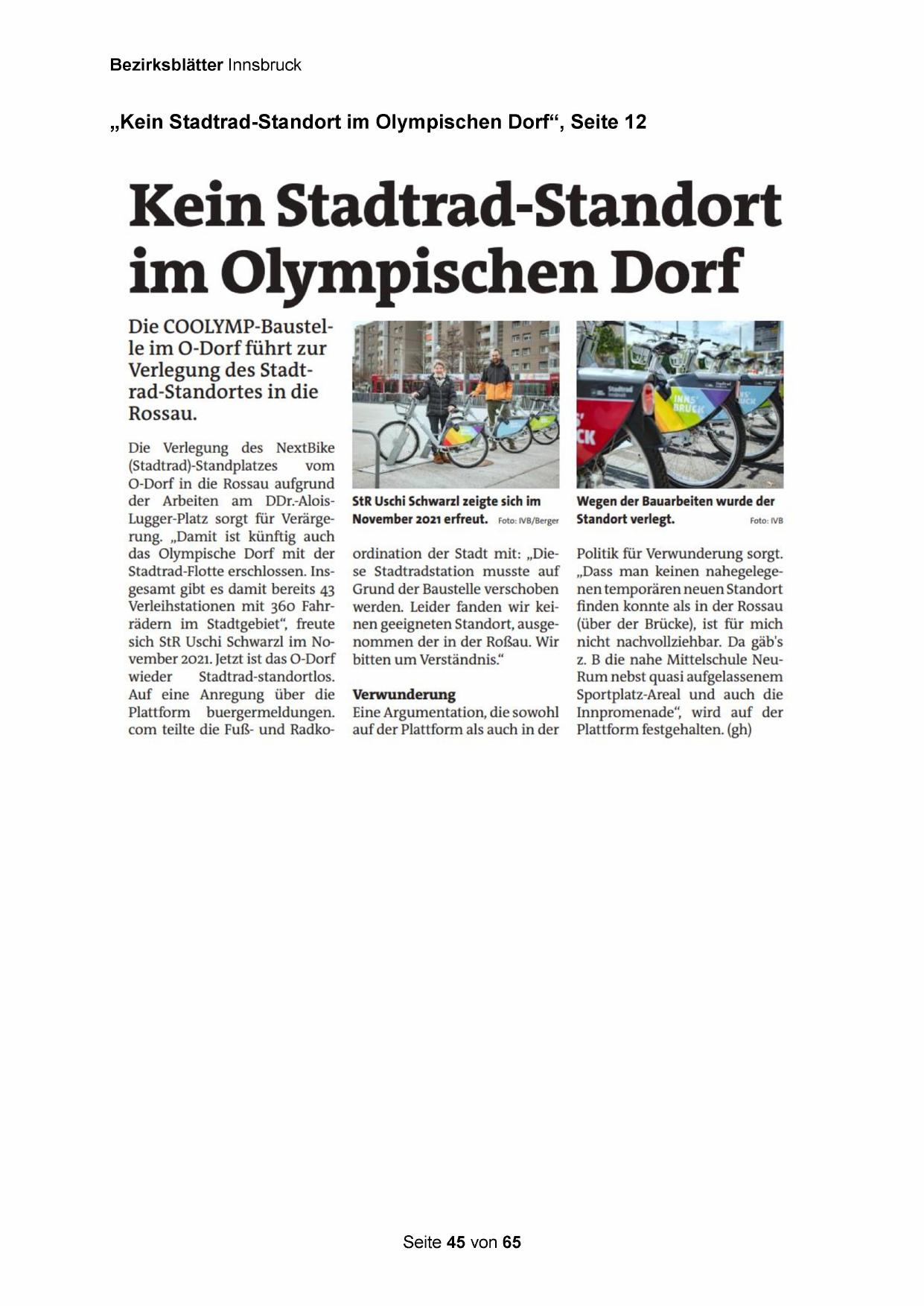 „Kein Stadtrad-Standort im Olympischen Dorf“, Seite 12