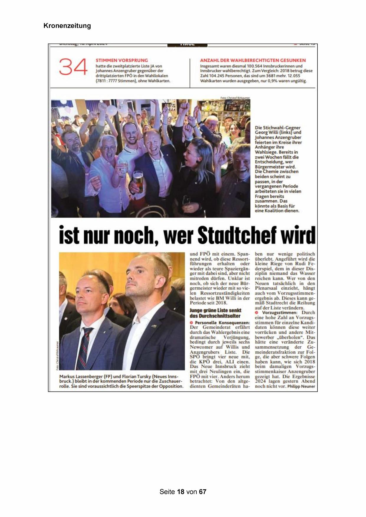 Innsbrucker wahlberechtigt. Zum Vergleich: 2018 betrug diese