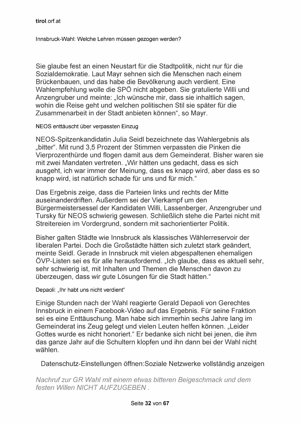 Innsbruck in einem Facebook-Video auf das Ergebnis. Für seine Fraktion