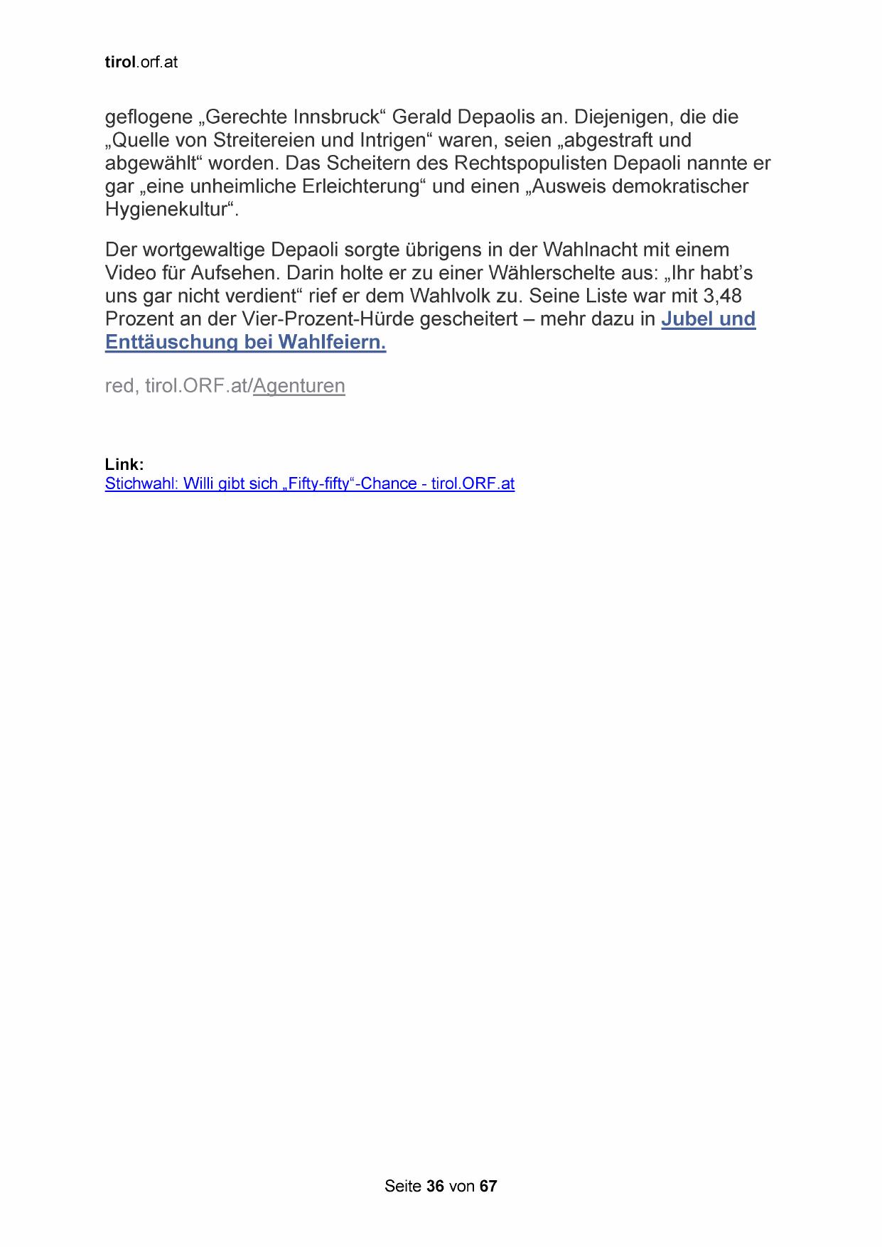 geflogene „Gerechte Innsbruck“ Gerald Depaolis an. Diejenigen, die die
