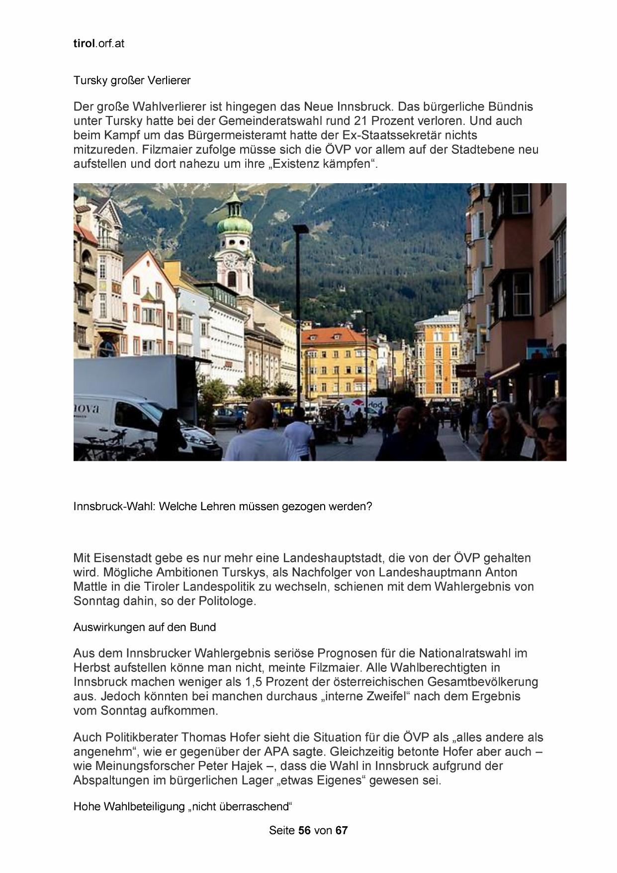 wie Meinungsforscher Peter Hajek —, dass die Wahl in Innsbruck aufgrund der