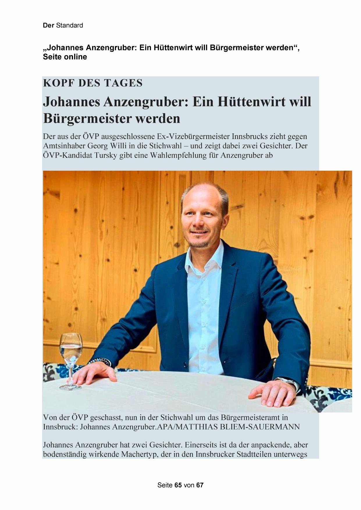 „Johannes Anzengruber: Ein Hüttenwirt will Bürgermeister werden“,