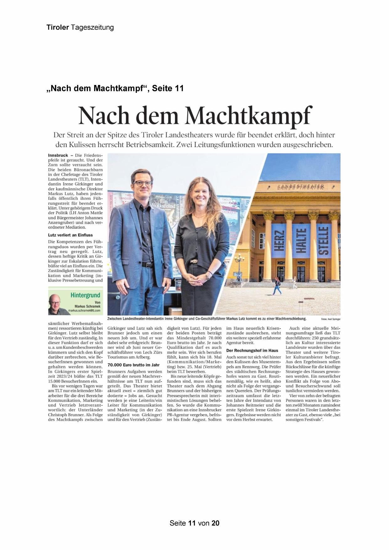 Der Streit an der Spitze des Tiroler Landestheaters wurde für beendet erklärt, doch hinter