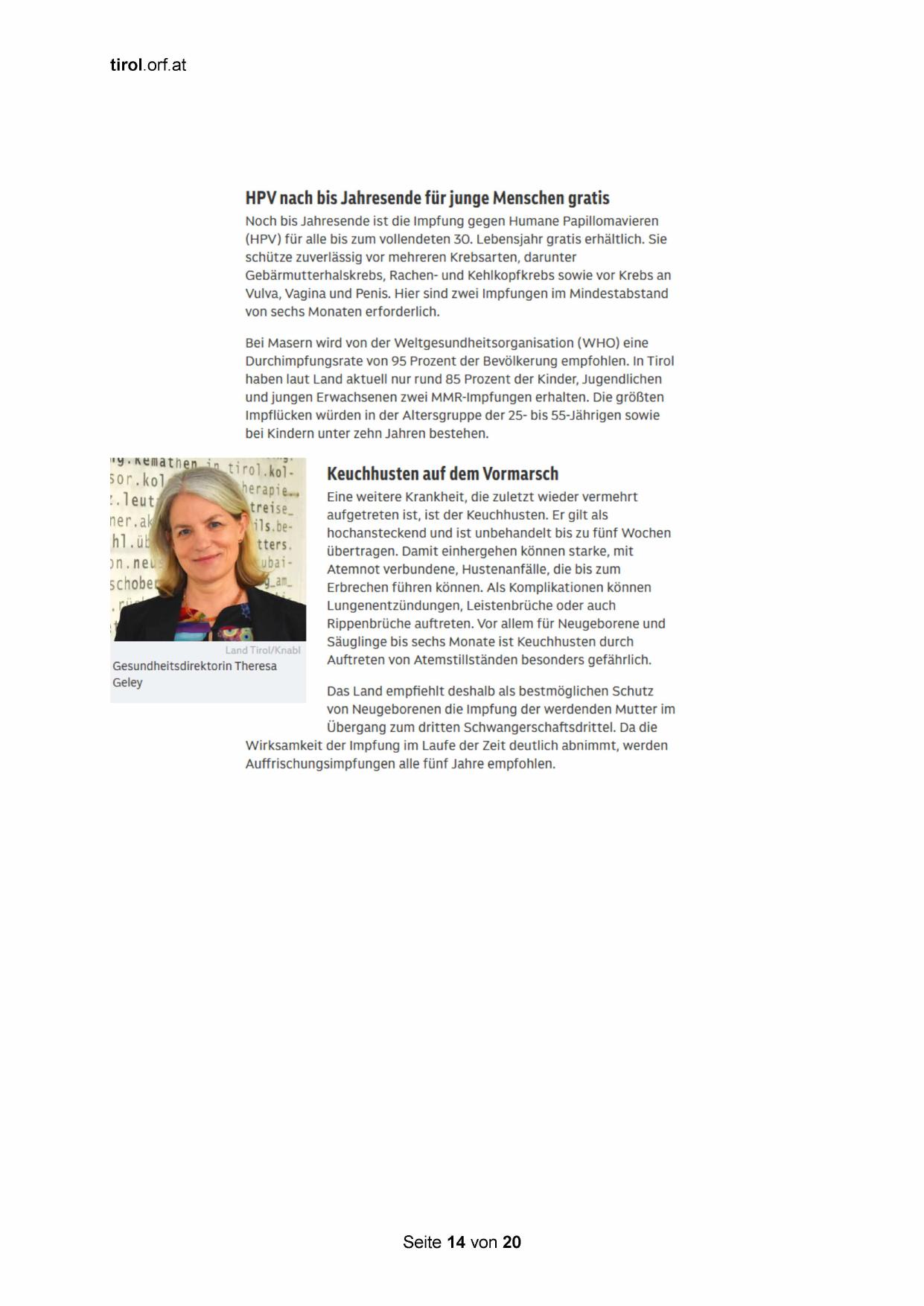 Durchimpfungsrate von 95 Prozent der Bevölkerung empfohlen. In Tirol