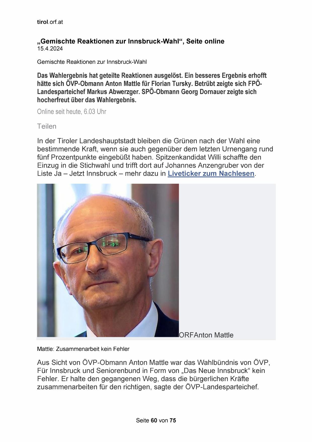 „Gemischte Reaktionen zur Innsbruck-Wahl“, Seite online