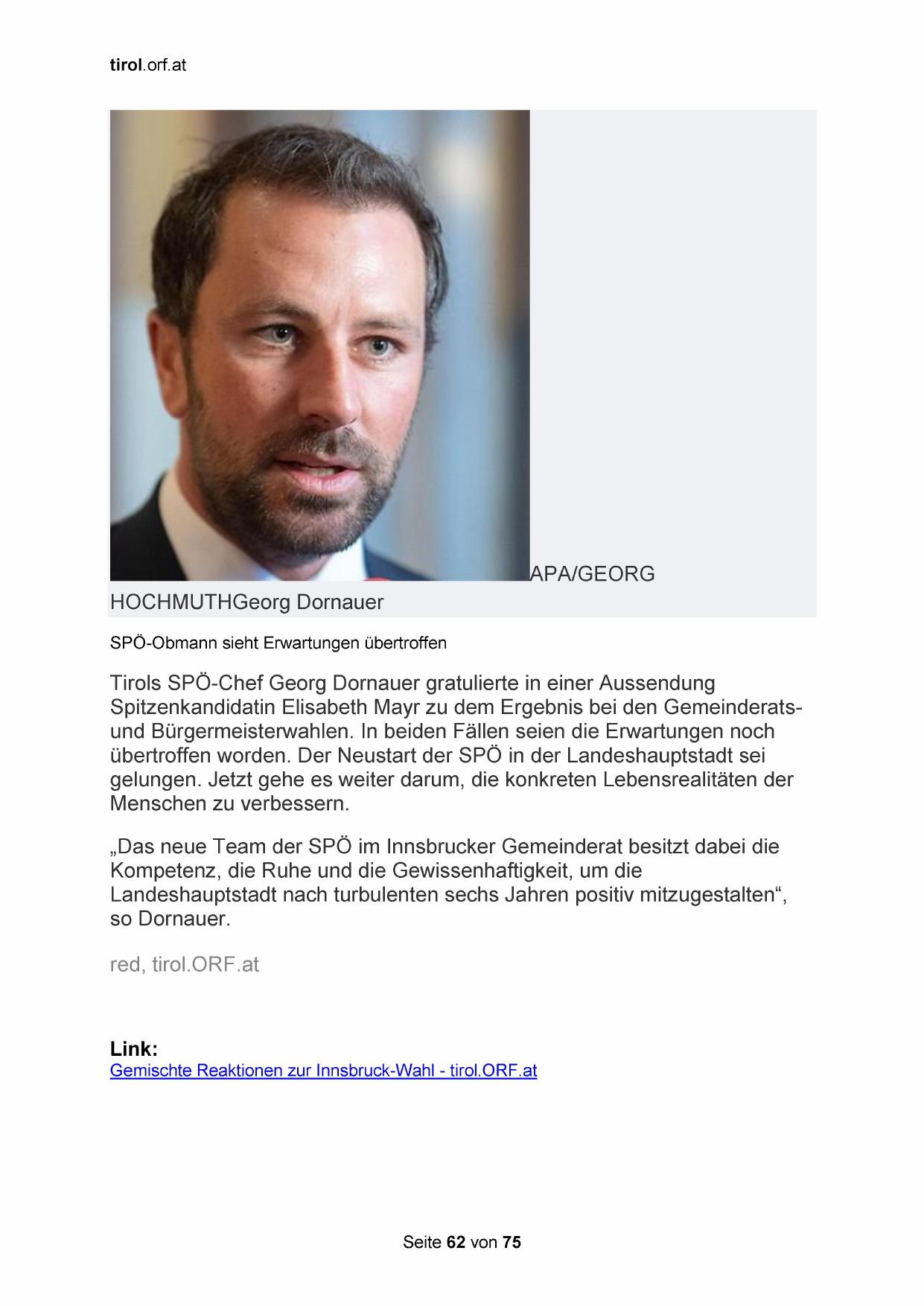 Tirols SPÖ-Chef Georg Dornauer gratulierte in einer Aussendung