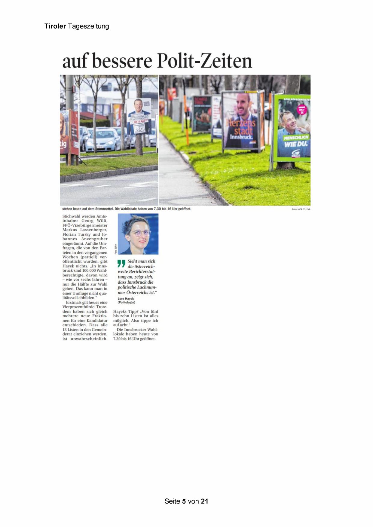 Hayek nichts. „In Innsbruck sind 100.000 Wahlberechtigte, davon wird