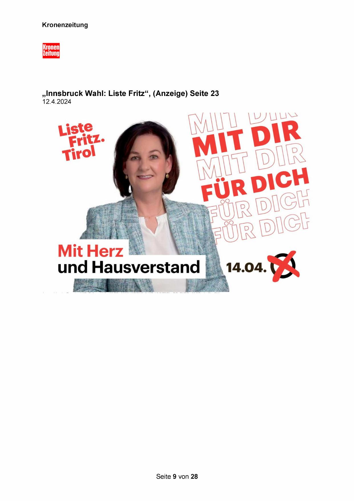 „Innsbruck Wahl: Liste Fritz‘“, (Anzeige) Seite 23