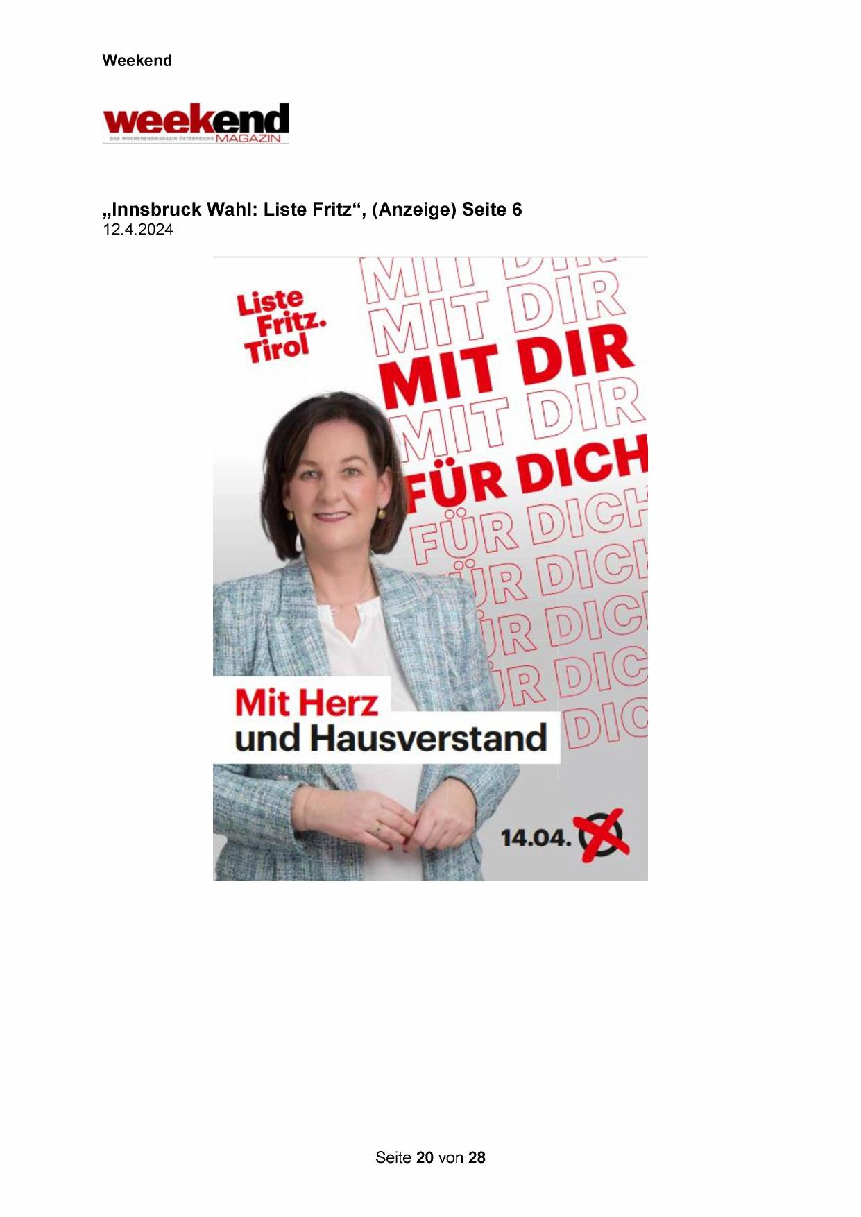 „Innsbruck Wahl: Liste Fritz‘“, (Anzeige) Seite 6