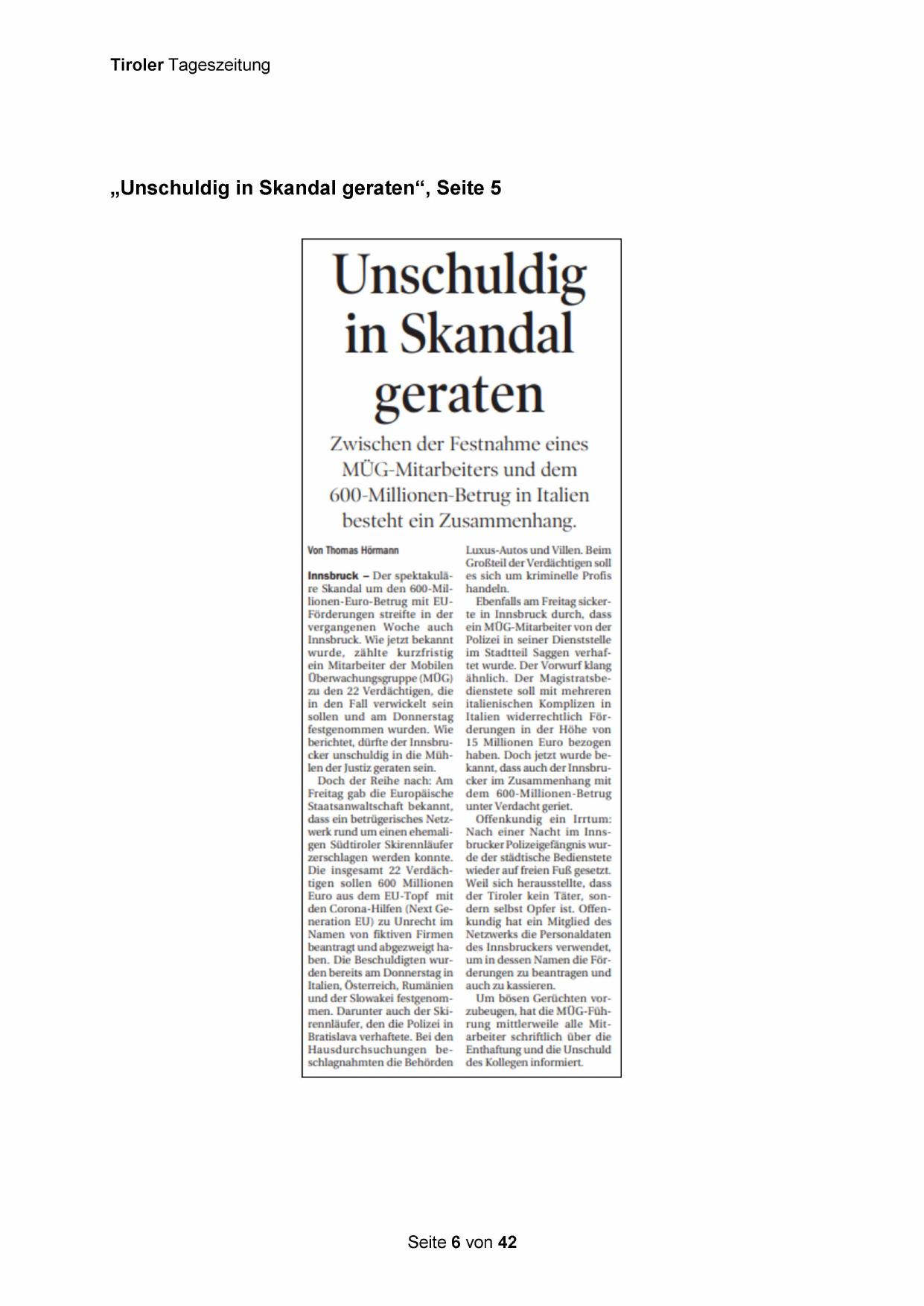 haben. Doch jetzt wurde bekannt, dass auch der Innsbrucker im Zusammenhang mit