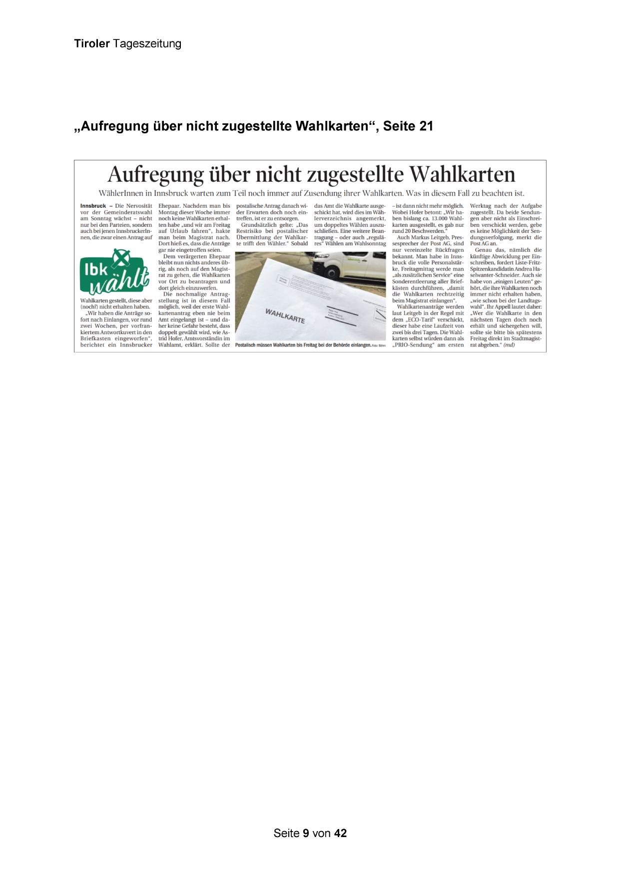 „Aufregung über nicht zugestellte Wahlkarten“, Seite 21
