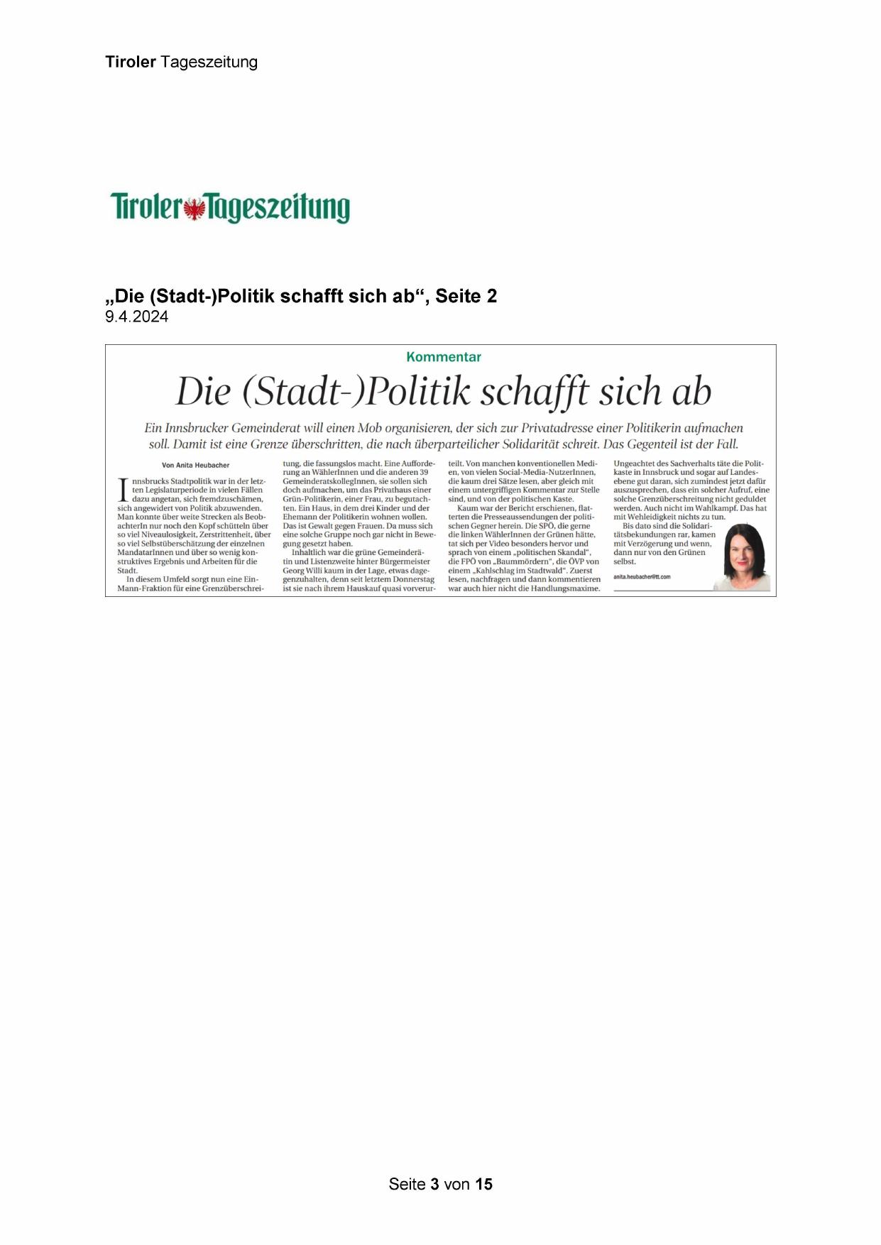 Ungeachtet des Sachverhalts täte die Politkaste in Innsbruck und sogar auf Landesebene gut daran, sich zumindest jetzt dafür