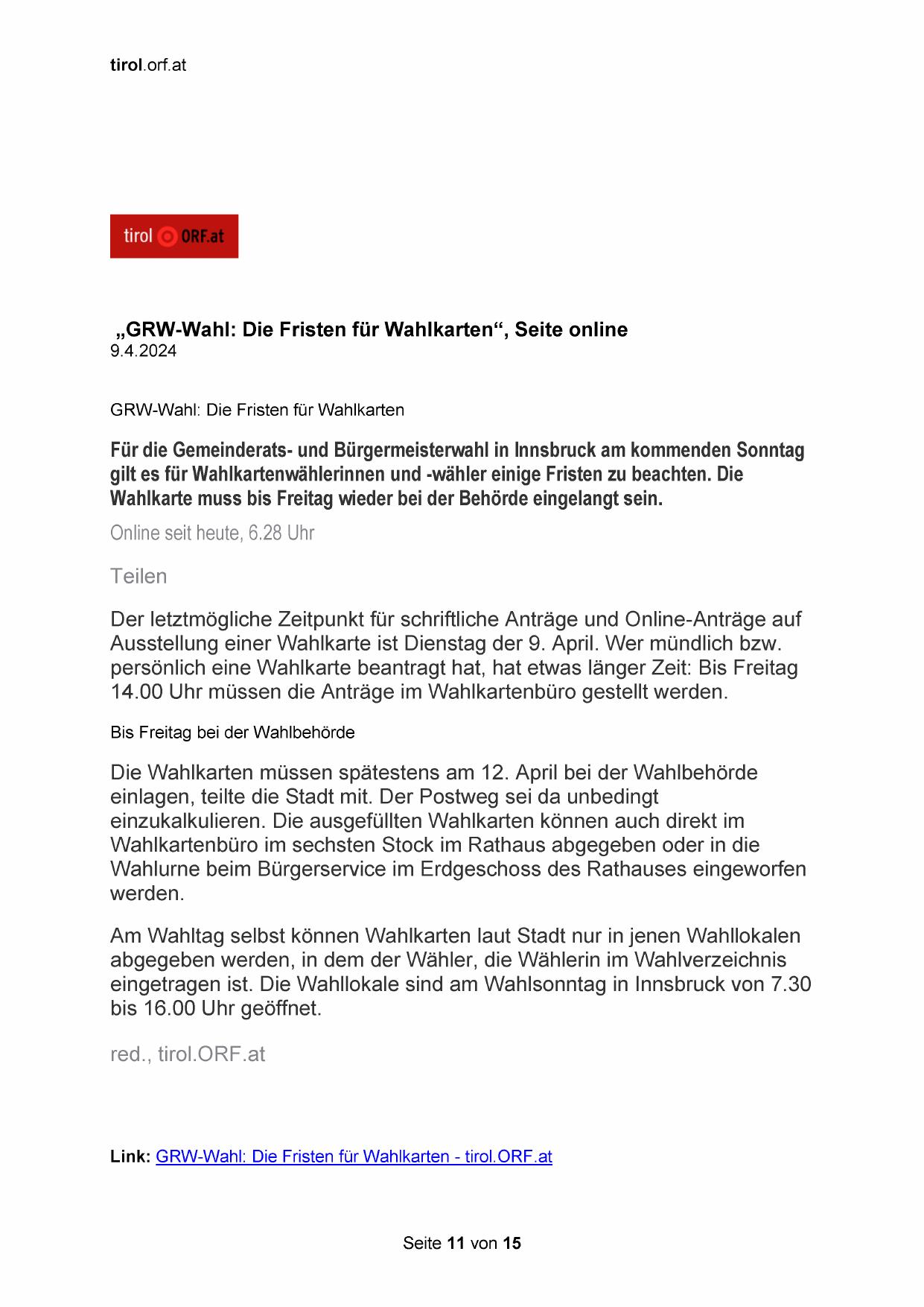 Link: GRW-Wahl: Die Fristen für Wahlkarten - tirol.ORF.at
