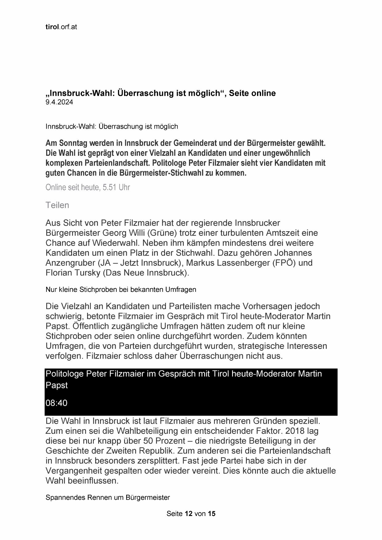 „Innsbruck-Wahl: Überraschung ist möglich“, Seite online