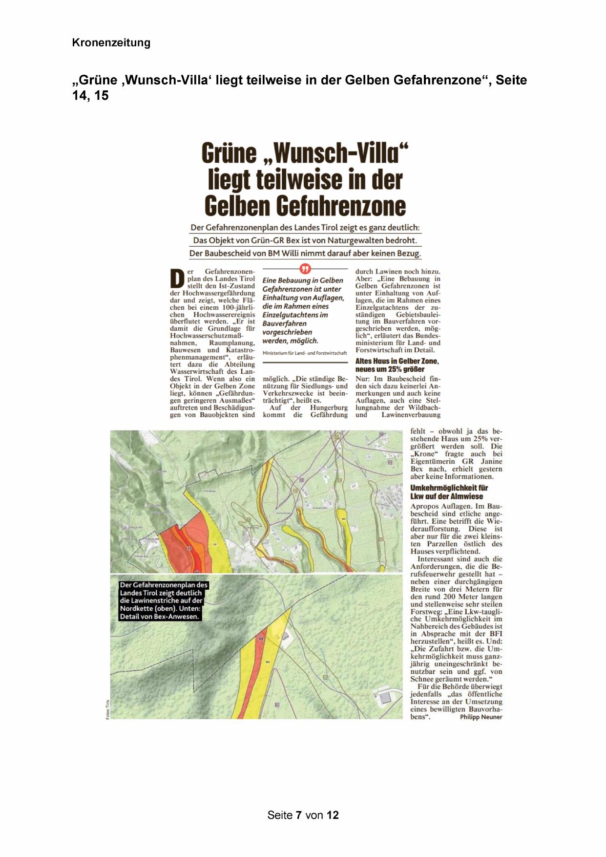 „Grüne ‚Wunsch-Villa‘ liegt teilweise in der Gelben Gefahrenzone“, Seite