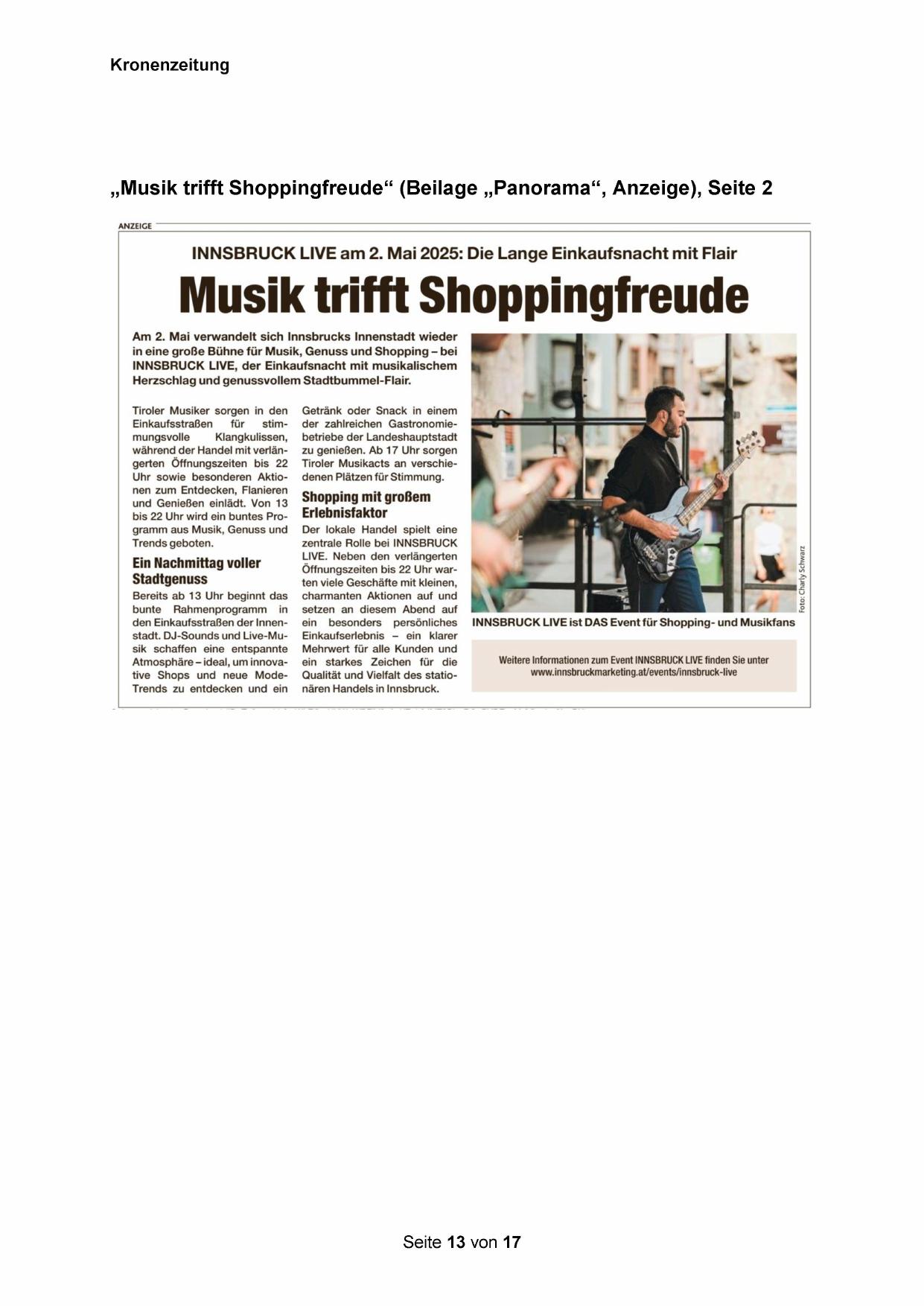 INNSBRUCK LIVE am 2. Mai 2025: Die Lange Einkaufsnacht mit Flair