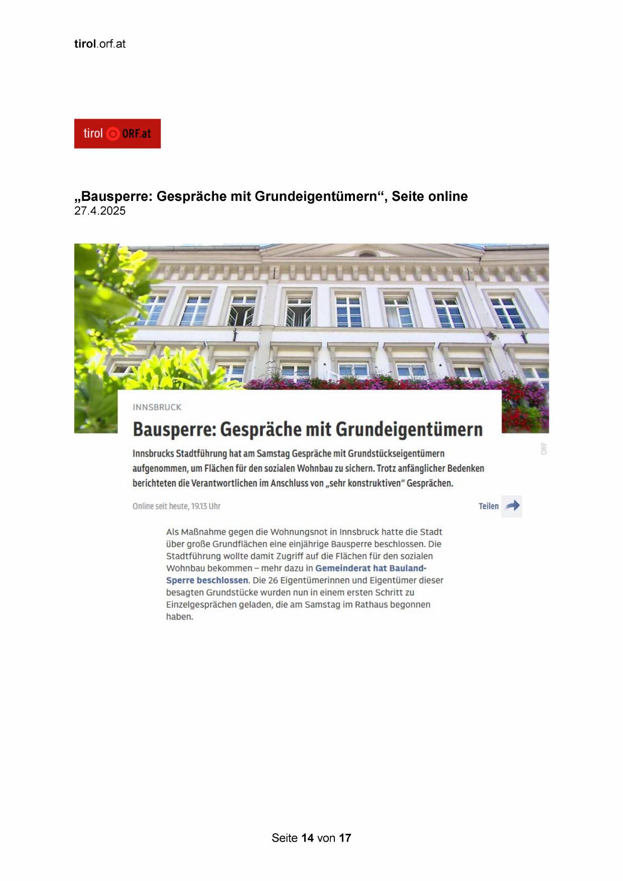„Bausperre: Gespräche mit Grundeigentümern“, Seite online