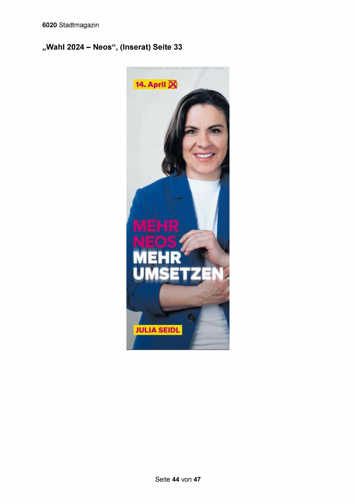 „Wahl 2024 — Neos“, (Inserat) Seite 33