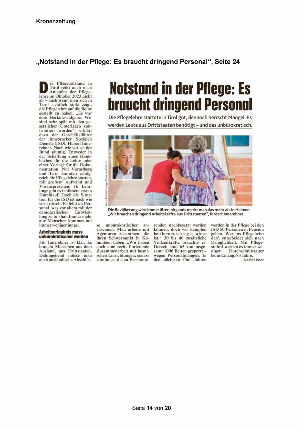 „Notstand in der Pflege: Es braucht dringend Personal“, Seite 24