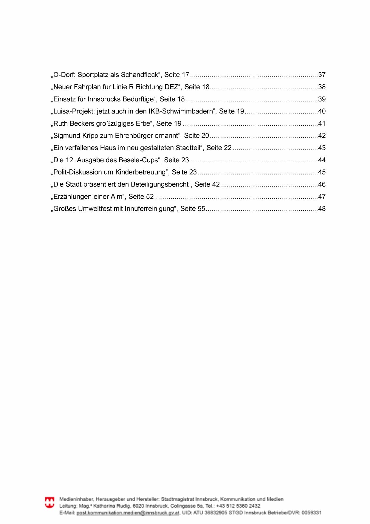 FPYY Medieninhaber, Herausgeber und Hersteller: Stadtmagistrat Innsbruck, Kommunikation und Medien