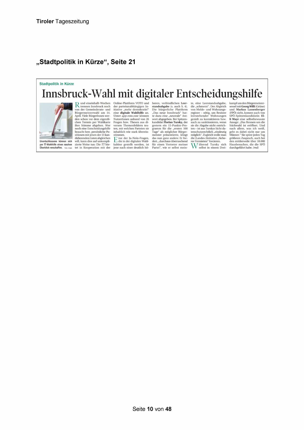 Innsbruck-Wahl mit digitaler Entscheidungshilfe