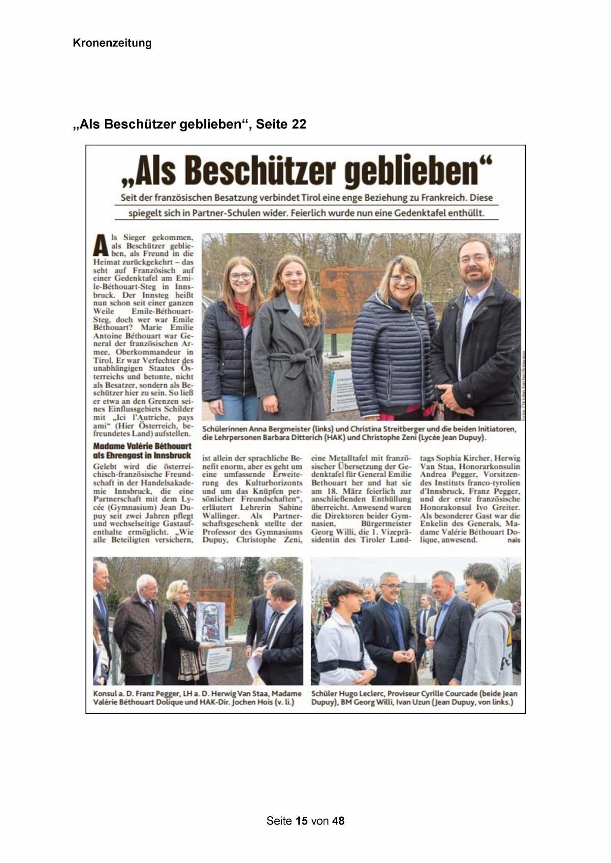 Gelebt wird die Österreichisch-französische Freundschaft in der Handelsakademic Innsbruck, die ceine