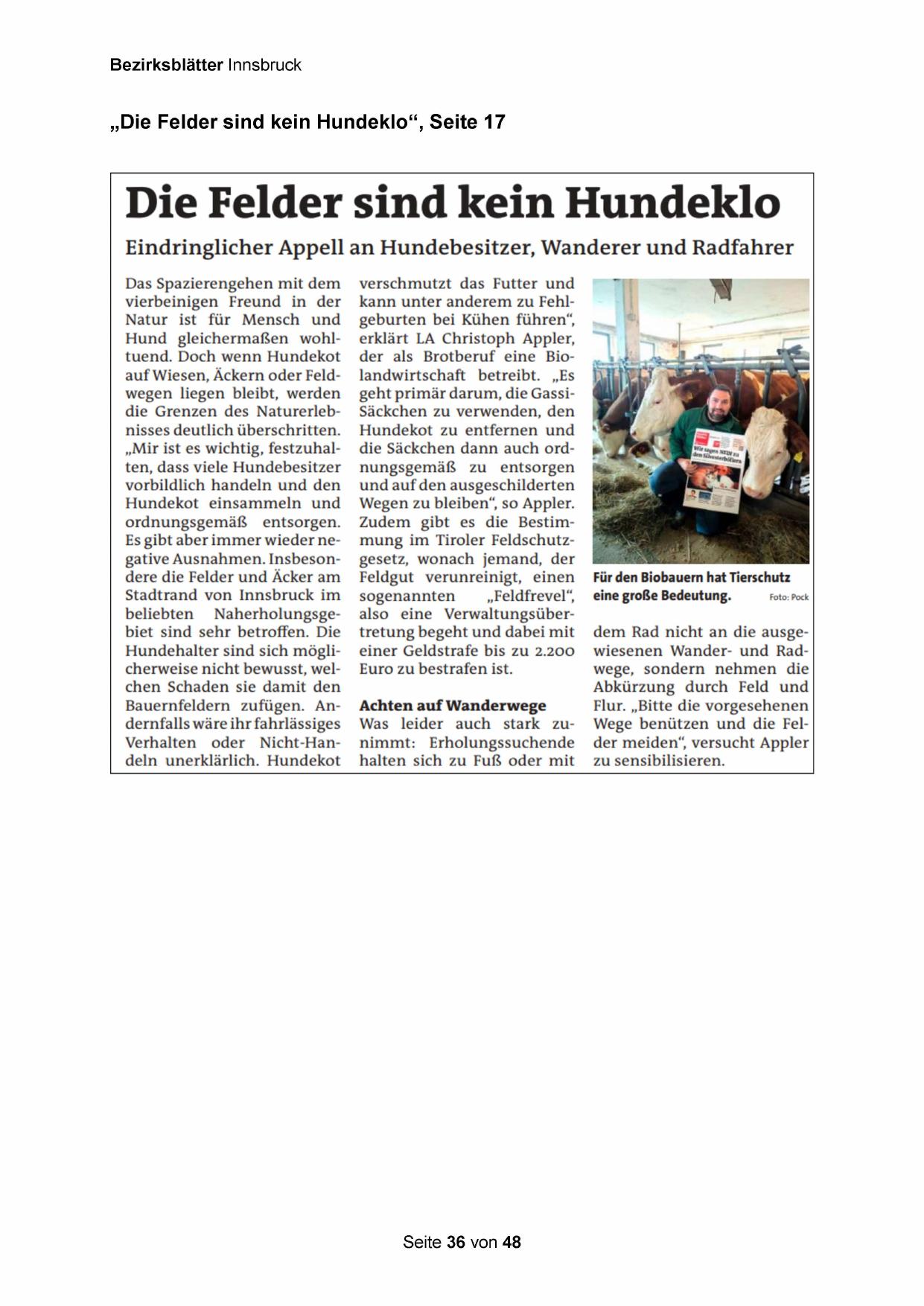 Zudem gibt es die Bestimmung im Tiroler Feldschutzgesetz, wonach jemand, der