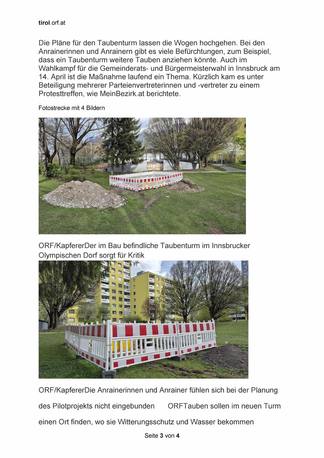 des Pilotprojekts nicht eingebunden ORFTauben sollen im neuen Turm
