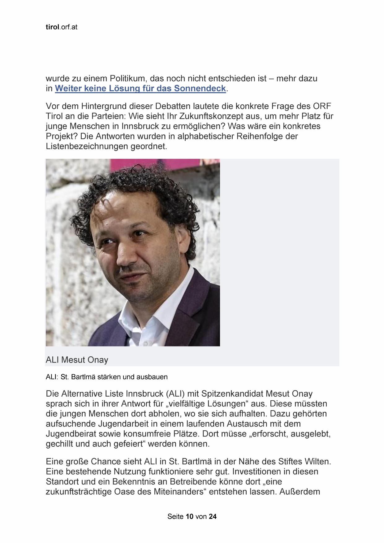 Die Alternative Liste Innsbruck (ALI) mit Spitzenkandidat Mesut Onay